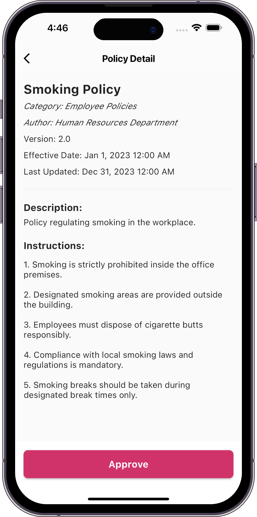 Effortlessly manage company policies in AstroTime. Create, update, and assign policies to users or roles, ensuring access to the latest guidelines. Simplify policy acceptance by allowing users to review and approve directly within the platform, fostering compliance and transparency. With AstroTime, promote accountability and ensure alignment with organizational policies.